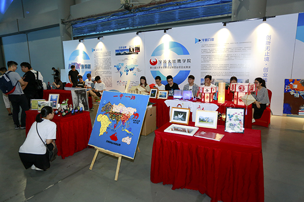 当天,我校展出了“电光火石”电子DIY创意实物模型,机器人运动会机器人模型,“读懂美”光影迷幻创意纸灯,“疯狂的石头”石头设计,校园十景的四季文创作品,以宁波大红鹰学院为背景的IP形象设计,港口物流模型,“动感”光立方机器人,“一带一路一画一涂”创意地图等30余个项目350余件展品。陈仲朝等领导实地参观了展览,详细听取了我校有关大学生创新创业工作情况介绍,并对我校大学生创新创业成果给予了充分肯定。同时,我校学生较强的创新思维意识和创意设计能力也得到前来参观市民的高度认可。