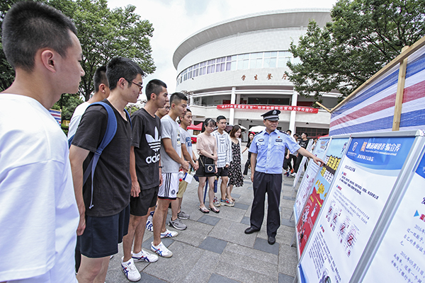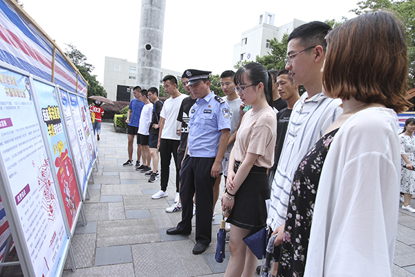 6月19日上午,宁波市公安局海曙分局经侦大队与我校保卫处联合开展了“做自己的首席安全官”经济犯罪防范宣进校园活动。