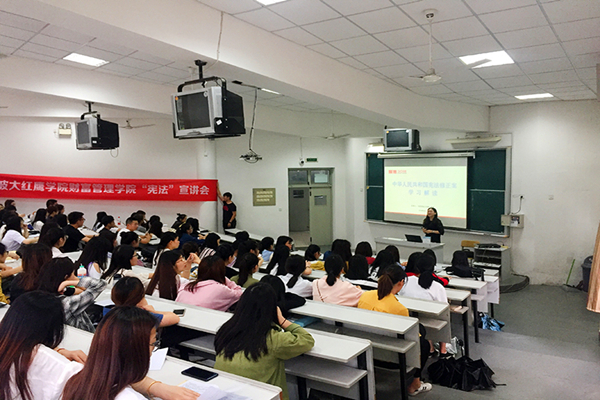 近期,党委宣传部、纪检监察审计处、马克思主义学院协同开展了新宪法学习宣讲会活动,各二级党组织组织学生业余党校、团校、干校学员参加学习和研讨,全校掀起了“学宪法、知宪法”的学习热潮。