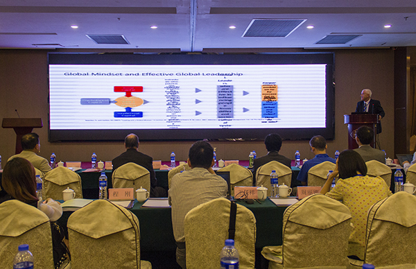 美国特洛伊大学商学院副院长Joe Teng博士、国际合作项目院长助理Clint Relyea博士、美国商学院联盟商科专业认证导师William Hamby博士、英国宁波诺丁汉大学Liu Weimin教授、日本大阪市立大学Oda Toshihiro博士、韩国西江大学Ingyu Lee教授及相关教师和留学生代表等130余人参会。宁波工程学院副校长王菁华,我校校长助理蒋天颖教授参加开幕式并致辞。我校工商管理学院教师代表参加研讨活动。