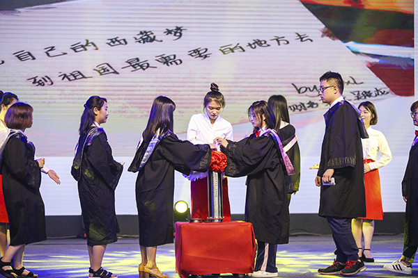 典礼举行了“未来之约”时光胶囊封存仪式。各班级代表依次把关于理想、关于生活、关于未来的信封依次投入时光胶囊封存,并约定数年以后再度开启。