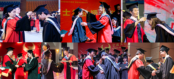 各学院领导为毕业生拨穗正冠并颁发学士学位证书