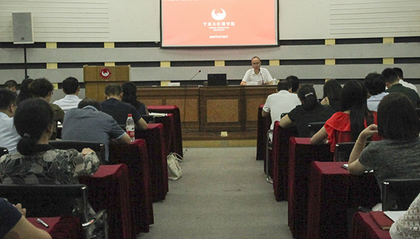 校党委副书记林长兴作了“立德树人 以本为本”的报告。他说,新时代全国高等学校本科教育工作会议上,陈宝生部长提出要坚持“以本为本”,推进“四个回归”,加快建设高水平本科教育、全面提高人才培养能力,造就堪当民族复兴大任的时代新人,这对我校和全体教师提出了新的要求。他以国内外大学校友捐赠的案例出发,生动解读了四个回归、四个为本的内涵。他希望全体教师要充分认识“以本为本”的实质与意义,坚定不移地坚持“以本科教育为本、以人才培养为本、以教师和学生为本、以增强本领为本”,全面提升人才培养质量与水平。在谈到怎样坚持“以本为本,推进四个回归”时,他认为“学校无小事,事事在育人;教师无小节,处处为示范;学生无小声,声声在评价”,他希望全体领导干部要明确好方向目标,共同致力于把学校打造师生共建共享的“和谐精神家园”, 共同致力于培养一批有个性的学生,共同致力于培养一批有品牌的学生,以实际行动切实落实好新时代全国高等学校本科教育工作会议精神。