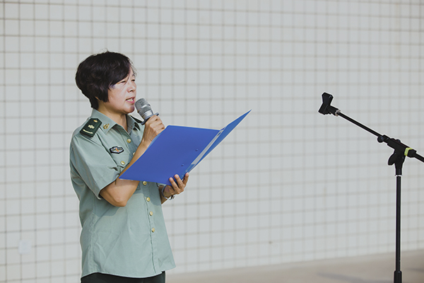 何秋叶代表学校学生军训与征兵工作领导小组作了军训动员讲话。为切实做好2018年军训工作,她要求全体教员、学员以饱满的政治热情,积极的学习态度投入到训练中去,用出色的状态迎接大学新的阶段;用科学的方法、严明的纪律,努力达到“练体能、练技能、练作风”军训目标,让军训生活就成为全体教员、学员美好的难忘回忆;牢固树立“安全第一”的意识,从思想上、制度上、操作上严防各种事故发生,安全、高效完成本次军训任务。