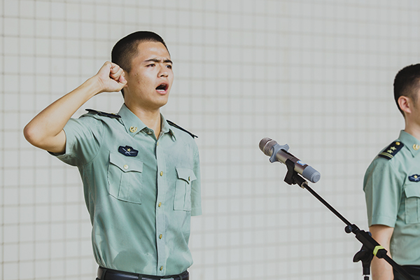 开训式上,沈云慈宣读了军训师成立及其干部任命文件,并为军训师授师旗,军训师负责人接旗并为各团部授团旗,军训教员和学员代表分别进行了宣誓。