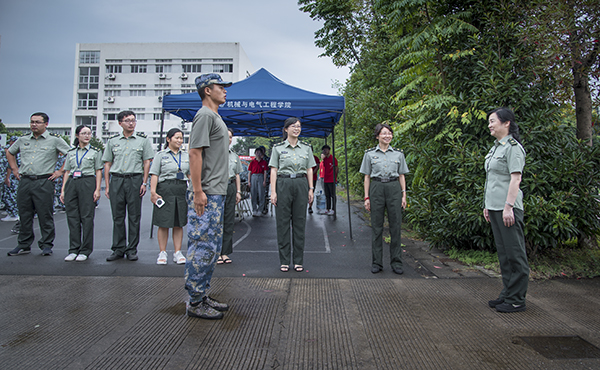 9月7日下午,校长孙惠敏、校党委副书记林长兴一行到本部校区军训场地察看2018年学生军训情况,看望慰问军训教员、学员和教师代表。孙惠敏仔细询问了军训学员们的训练情况,并对同学们积极有为的精神面貌、吃苦奋进的学习态度给予了肯定。9月10日上午,孙惠敏一行又赴杭州湾校区军训场地走访看望了军训教员、学员和教师代表。