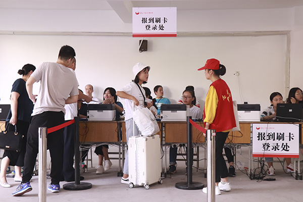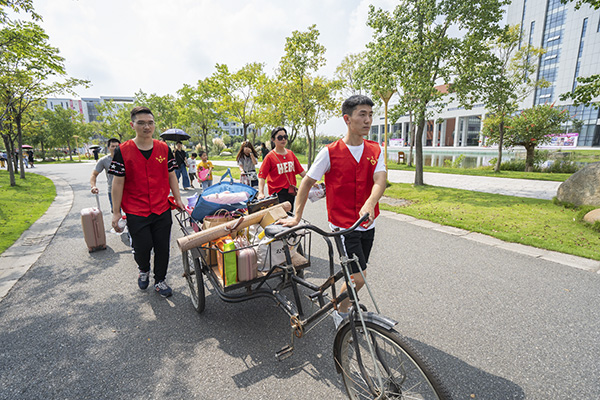 财务管理(家族财富管理方向)专业新生金昶旭、汉语国际教育专业新生俞丹妮、金融工程专业新生李长庚等同学报名参加了2018级新生骨干培训班,他们和其他450余名骨干班学员提前来校报到,在接受相关培训后,充分发挥学生骨干作用,主动参与并承担了大部分新生接待志愿服务工作。