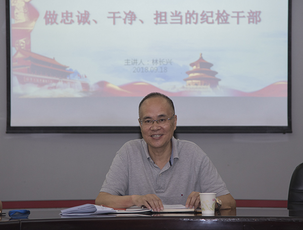 会上,林长兴作了题为“做忠诚、干净、担当的纪检干部”的报告。他首先带领全体人员重温了纪检监察工作职责。他强调,依规依纪依法履行职责是严肃的政治要求和政治责任,要进一步明确纪检监察工作任务,认真履行纪委“监督、执纪、问责”和监察“监督、调查、处置”职责。他说,在政治建设上,要旗帜鲜明的讲政治,增强党员干部“四个意识”;在落实党风廉政建设“两个责任”上,要压紧压实各级党组织全面从严治党主体责任、主要负责人的第一责任和纪委监督责任,明确干部“一岗双责”要求,加强防范重点领域岗位廉政风险;在教师师德师风建设上,要以教师“三个四”建设标准,大力提升教师队伍思想政治素质;在党员干部学习教育上,要切实规范“三会一课”,将习近平新时代中国特色社会主义思想有关内容列为党校干校的必修课。他要求,纪检监察干部要加强队伍建设,牢固树立进取意识、机遇意识、责任意识,提高履职能力和水平,做到守土有责,守土负责,守土尽责;要加强学习,提高政治站位,立足职责所在,敢于发声,发挥自身示范引领作用,做“忠诚、干净、担当”的纪检干部。