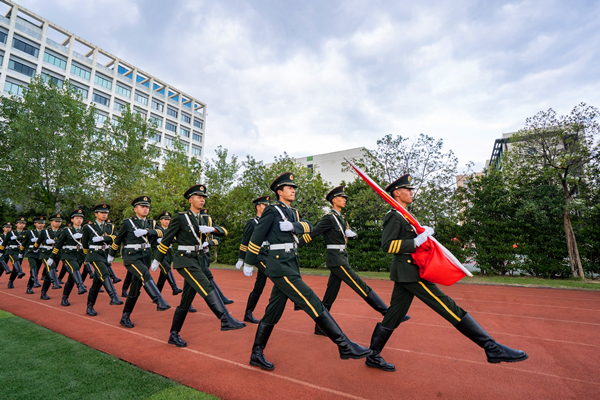10月1日上午7时,我校200余名青年师生代表齐聚本部校区南区运动场,参加国庆升旗仪式,共同庆祝中华人民共和国成立69周年。军训教导队国旗班的同学护送着国旗,迈着铿锵有力的步伐,自信专注地走向升旗台。国歌奏响,鲜艳的五星红旗冉冉升起、迎风飘扬。大家齐唱国歌,祝福国家繁荣富强。