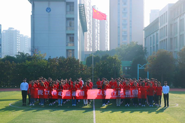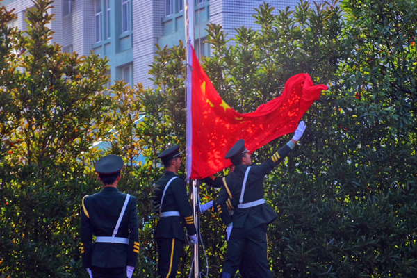 升旗仪式结束后,师生们纷纷拿出相机与国旗合影留念。大家用不同形式的图片、文字和视频内容表达了对祖国母亲的由衷热爱和真挚祝福。校团委负责人表示,在党的十九大精神的引领下,学校各级团组织围绕立德树人根本任务,充分发挥思想引领作用,全面服务广大青年学生成长成才,致力于培养党的忠实助手和忠诚后备军。广大红鹰学子深入学习贯彻习近平新时代中国特色社会主义思想,自觉践行社会主义核心价值观,大力弘扬爱国主义精神,勤奋学习,提高本领,筑牢成长成才之基,争做爱国励志求真力行的新时代青年,努力成为能担负起历史重任的栋梁之才。学生代表、校学生会副主席刘剑鹏同学说,时值国庆,广大红鹰学子“为祖国欢呼,为青春喝彩”!同学们将牢记习近平总书记对青年的嘱托,紧跟时代,学在前列,干在实处,事不避难,勇于担当,将个人理想融入到实现中华民族伟大复兴的中国梦之中,在实践中不断贡献青年力量,追寻青春梦想。