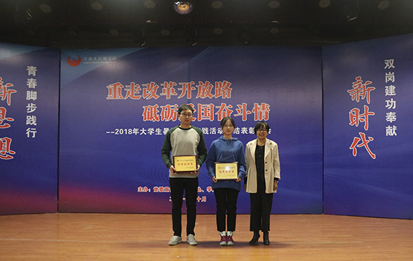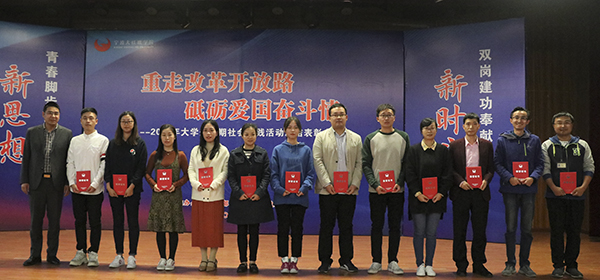 据了解,我校2018年大学生暑期社会实践活动以“重走改革开放路,砥砺爱国奋斗情”为主题,深入农村和社区,积极开展“理论普及宣讲、国情社情观察、文化艺术服务、美丽浙江实践、科技支农帮扶、教育关爱服务”等实践活动,取得了广泛的社会效益和深远影响,被人民网、中国青年网、中国网、搜狐网、今日头条、宁波日报、开封日报、天台日报、温岭日报、今日象山报、今日玉环报以及象山电视台、天台电视台、温岭电视台等70余家媒体累计新闻报道(含转载)1000余次。其中,我校青柠创想空间暑期社会实践团、魅力传承暑期社会实践团荣获2018年“三下乡”社会实践全国重点团队荣誉。
