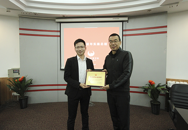 会上还进行了学校首批文化成果奖颁奖仪式和工作交流。经申报和评审,人文学院申报的项目“阳明讲堂——阳明文化的传承与光大”、校团委申报的项目“知行课堂——社会实践文化育人共同体的构建”获评学校首批文化成果奖。相关负责人进行了工作经验汇报交流。