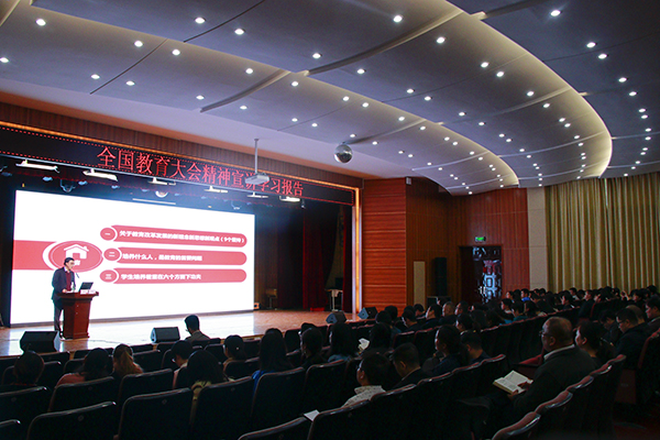 为深入学习宣传贯彻全国教育大会精神,进一步引导广大师生把思想和行动统一到习近平总书记在全国教育大会上的重要讲话精神上来,我校组建了由全体校党委委员和二级学院党组织负责人组成的全国教育大会精神宣讲团,积极开展大会精神宣讲活动。近期,宣讲团成员先后为各单位教职员工作了全国教育大会精神系列宣讲。