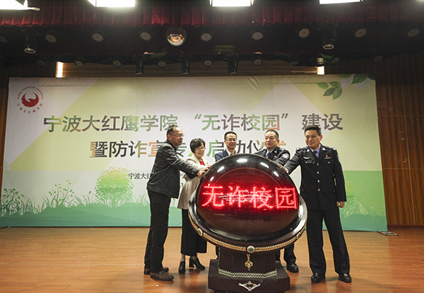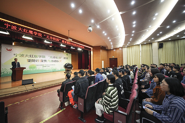 11月8日,我校“无诈校园”建设暨防诈宣传月启动仪式在本部校区中区小剧场举行,副校长沈云慈、校长助理何秋叶、宁波市公安局海曙分局副局长严立新、市公安局海曙分局高桥派出所教导员周伟等出席,宣传部、保卫处、学生处有关负责人,学生军训教导队全体成员以及各二级学院师生代表等参加活动。