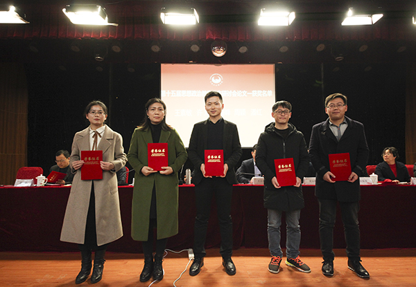 副校长王云儿宣读了校第七届“师德标兵”表彰文件。陈宏、王琦、涂晶洁、田玉军、刘静、熊兢、王玉凤、田荣富、彭绪山、余毅、李小芳等老师被评为校第七届“师德标兵”。包小云、费江波、王华丰、杨昱昺、樊燚琴、劳蕾蕾、林虹等老师获“师德标兵”提名奖。副校长李羽宣读了第十五届思政研讨会论文获奖名单,王素敏等5位老师的论文获一等奖,张陶然等10位老师的论文获二等奖,邵将等17位老师的论文获三等奖。在全场的热烈掌声中,与会领导为获奖人员颁发了荣誉证书。