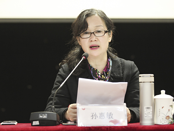 会上,校长孙惠敏作了题为“持续深化‘课程思政’建设 大力提升学校思政工作质量”的报告。她总结了一年来学校“课程思政”建设行动的举措与成效。过去一年,学校完善顶层设计,明确“课程思政”建设目标任务,并狠抓责任落实,校院两级推进有抓手见成效。同时,实施多途径提升行动,不断增强教师德育意识和育人能力,并建立多方联动机制,有力确保建设行动整体持续推进。她强调,“课程思政”是有效发挥课堂育人主渠道作用的必然选择,建设的关键在于教师。她指出,下阶段,学校要坚持以立德树人为根本,牢牢抓住全面提高人才培养能力这个核心点,高质量推进课程思政建设,打造课程思政2.0版本,努力构建以思政课为龙头,专业课、通识课和拓展课同心同向、协同育人的“全课程”工作格局。一是要以思政课程为龙头,依托思政课质量提升工程坚定守好思政教育主阵地,正面显性做好思想引领。二是要以专业课程为突破重点,加强教师“课程思政”设计能力,在专业教育中强化学生职业素养、家国情怀。三是要以通识课程为重要组成,丰富课程选择、优化课程内容体系,增强学生的文化自信和道德修养。四是要以拓展课程为实践平台,提升二三课堂项目化、课程化实施质量,打造实践社会主义核心价值观的大课堂。