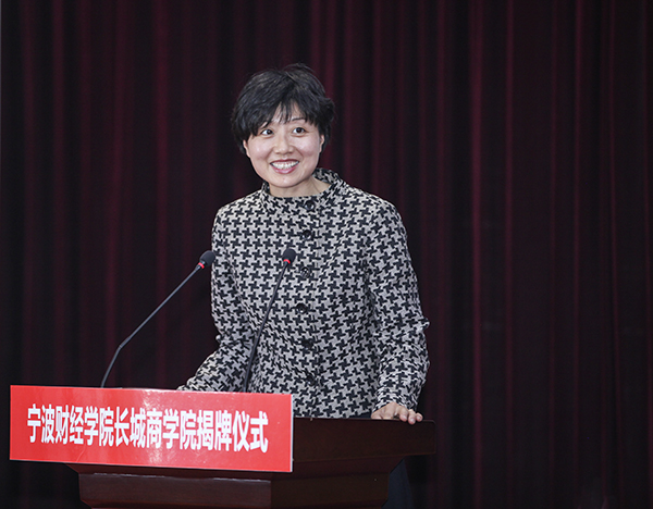 刘昱在致辞中代表市教育局对长城商学院的揭牌表示热烈祝贺。她表示,宁波财经学院与长城战略咨询在前期建立了全面战略合作关系,双方携手共进,取得了丰硕成果。今天揭牌成立的长城商学院既是学校和长城战略咨询共进发展的重要里程碑,也是宁波高等教育和宁波经济社会发展的重大事件。她希望在双方的共同努力下,将长城商学院打造成为一流特色的新型商学院,为学校创新发展、宁波高等教育跨越式发展、宁波区域经济高质量发展贡献重要力量。