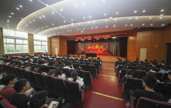 王娇俐表示,在欲望、情绪和习性的影响下,当代青年会遭遇各种困难与挑战。由王阳明创立的阳明心学在当下仍具有强大的生命力,在培育时代新人等方面具有积极的实践意义。她例举“七日格竹”“龙场悟道”“智擒宁王”等故事,为大家生动讲述了王阳明出生、求学、求知、从仕、讲学过程中的“奇人奇事”。她说,习近平总书记在重要讲话中屡次提及王阳明的“知行合一”思想,并对知行辩证关系进行了深刻的理论阐述和实践探索。“知”和“行”是统一的,大学生要以知促行、以行促知,要敢于质疑、敢于创新、敢于担当、敢于实践。“合”是一种“沉浸式”的学习方式,“一”代表的是“致良知”。她强调,当代大学生要坚定理想信念,努力求学求知,不断修炼内心,发挥好“大海中的一滴水”作用,在知行合一中主动担当作为,在个人与社会的统一中实现价值,为早日实现中华民族伟大复兴的中国梦而不懈奋斗。