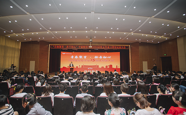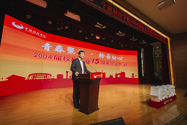 王云儿作了热情洋溢的讲话。他代表全校师生对各位校友返校表示热烈欢迎,并围绕“青春聚首·拾吾初心”的主题,向大家讲述了学校办学的“初心”故事、发展故事以及自己亲历学校改革进程中重大事件、重大活动的人生感悟。他颇有感触地说,二十多年前,在徐芳权、王翊士、孙惠敏等领导的大力倡议和推动下,宁波卷烟厂与市教委签订协议创办了学校。学校始终坚守举办者“让更多的人能读书读好书”的初心,以“不求经济回报,只求回报社会”的使命担当,积极承担社会责任,圆了万千学子的大学梦。他例举“学校筹建”“首次招生”“升本评估”“学校更名”等生动故事表示,学校发展过程中遇到了很多艰难险阻,但在全体师生的齐心协力下,攻坚克难,取得了一个又一个的胜利,成绩来之不易。他希望全体校友秉承“自信专注”的校训,立足工作岗位,为社会多做贡献;校友之间要相互帮助,加强联系,努力形成合力;要铭记师长教诲,积极作为,将“百折不挠、超越自我、不断追求崇高目标”的学校精神发扬光大。