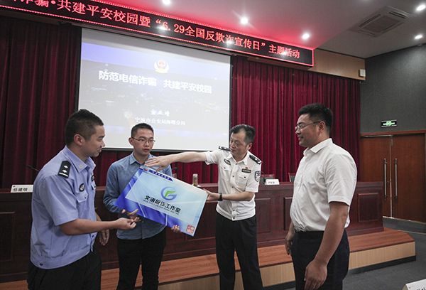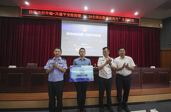 6月26日,防范电信诈骗 共建平安校园暨“6·29全国反欺诈宣传日”主题活动在我校举行,市公安局海曙分局局长宣业靖、副校长许锁迪、校长助理何秋叶等出席。各二级学院师生代表等参加活动。