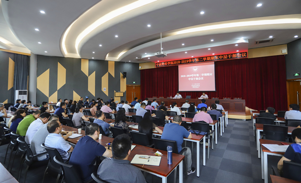 7月5日,学校举行2018-2019学年第二学期期末中层干部会议,校长王云儿出席并讲话,会议由校党委书记周波主持。校领导班子成员、全体中层干部参加会议。