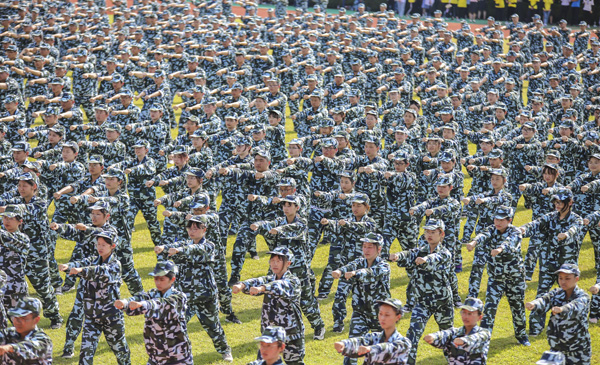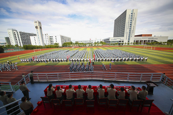 沈云慈作军训总结讲话。他充分肯定了2019年军训的丰硕成果,并向承担军训任务的军训教导队全体教官,以及参加军训组织、协调、后勤保障等工作的所有师生员工表示衷心感谢,对顺利完成军训任务的2018级参训学员表示热烈祝贺。他强调,军训包含了军事技能训练和军事理论学习,承载着素质教育、组织纪律教育、国防教育和爱国主义教育。全体军训教官和参训学员克服不利天气影响等各种困难,在规定时间内圆满完成了规定的军训任务。担当承训任务的军训教导队放弃暑假休息时间,从8月下旬开始集训,并以出色的训练成果再次为教导队队旗增添了光彩,用自己的表现赢得了全体受训学员的尊敬。军训期间,全体参训学员进一步增强了国防意识和国防观念,掌握了基本的军事知识和军事技能,磨砺了组织纪律和意志品质,提升了身体素质和文明素养,达到了既定的军训目标。他希望同学们继续巩固军训成果,将军训中养成的素养与习惯融入到新的学习生活中去,在学校里度过美好的大学生活;要勇敢面对挑战,时刻牢记“自信、专注”的校训,弘扬“百折不挠、超越自我,不断追求崇高目标”的学校精神,刻苦学习,锻炼自我,不断提升自身的综合素质,为将来步入社会、成就美好人生打下坚实基础。
