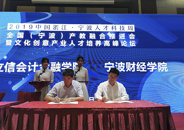 9月21日,2019中国浙江·宁波人才科技周活动的重要组成部分——全国(宁波)产教融合推进会暨文化创意产业人才培养高峰论坛举行。上午的论坛开幕式上,在中国高等教育学会监事长孙维杰,市委常委、宣传部部长万亚伟,市教育局党委书记、局长朱达等领导和与会嘉宾、专家学者的共同见证下,我校校长王云儿与上海立信会计金融学院党委书记李世平代表两校,现场签署全面合作协议。