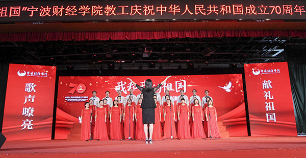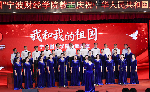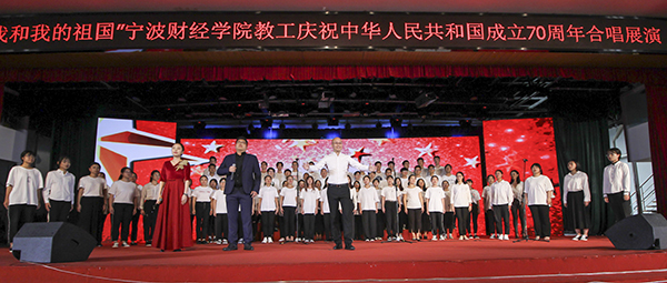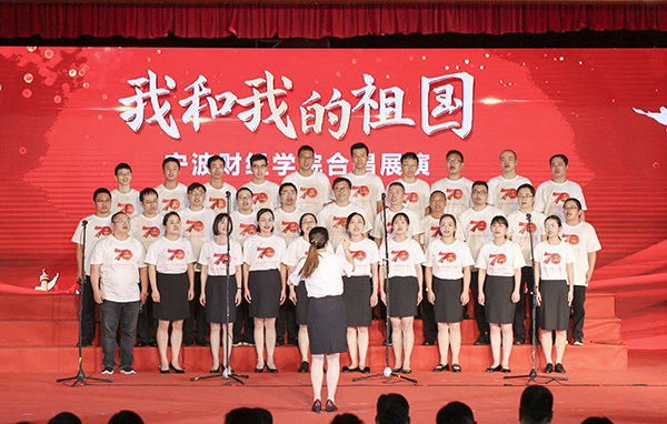 为庆祝中华人民共和国成立70周年,推进“不忘初心、牢记使命”主题教育,9月26日下午,“我和我的祖国”宁波财经学院教职工庆祝中华人民共和国成立70周年合唱展演在学生活动中心五楼激情唱响。校领导王云儿、周波、许锁迪、蒋天颖、高振强、何秋叶、李向东等同各分工会教职工一起观看演出。