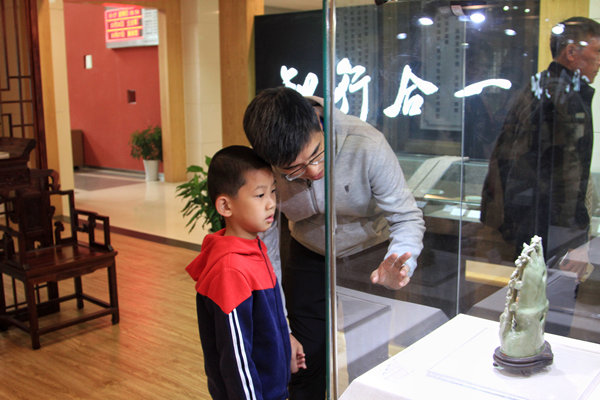 日前,2018届文化产业管理专业毕业生杨磊校友的个人收藏展“‘人间有味是清欢’——清心阁藏龙泉青瓷主题展”在阳明讲堂展出。宁波市收藏家协会秘书长林萍、陶瓷专委会副主任李文龙,庆安会馆副馆长蔡雷以及我校校长助理何秋叶,人文学院、教育发展基金会有关负责人等出席。