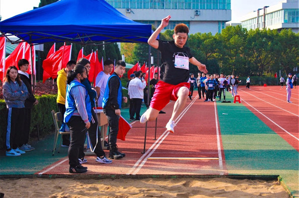 开幕式结束后,紧张激烈的比赛随即展开。830余名运动员参与了35个竞赛项目的比赛。除开展传统的竞技项目外,运动会还把“九人十足”、足球绕杆、滚铁环、消防水带接力跑等项目纳入比赛,增加了师生互动和趣味性、参与性。赛事活动精彩不断,呐喊助威声此起彼伏。来自数字技术与工程学院的俞武建同学一人打破男子1500米、5000米两项校运会记录。