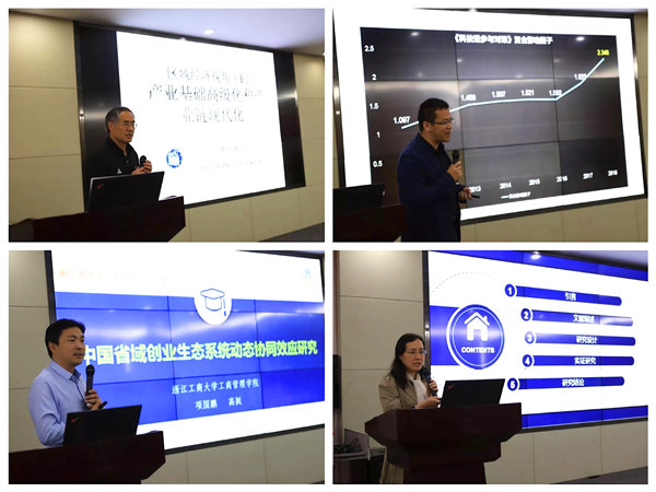 论坛专题报告环节中,罗中伟、陈晓峰、项国鹏、程华、赵迎军、王呈斌、池仁勇等专家从各自专业和研究领域出发,先后围绕“区域经济视角下的产业基础高级化和产业链现代化”“中国省域创业生态系统动态协同效应研究”“政府资助与企业创新的交互动态分析”“专业人才培养支撑区域产业高质量发展研究”“小微金融指数(台州)样本”“大数据征信与中小企业融资”等作了精彩发言。