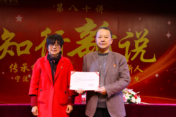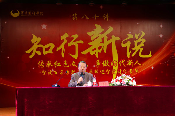 在全国上下深入开展“不忘初心、牢记使命”主题教育之际,11月28日下午,宁波市新四军研究会副会长叶小湖应邀来到我校,参加由市教育局主办、我校承办的“知行新说——宁波百名兼职思政导师进高校活动”的第八十讲活动,为青年学子讲授了一堂内容丰富、内涵深刻的思想政治教育与革命传统文化课。校长助理何秋叶出席,校团委、各二级学院青年师生代表等参加活动。
