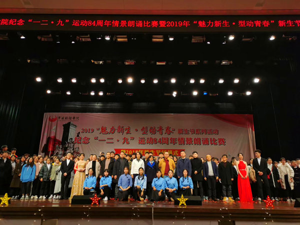 随着本次纪念“一二·九”运动84周年情景朗诵比赛的结束,我校2019年“魅力新生·型动青春”新生节活动也正式划上圆满的句号。与会领导为本届新生节活动相关获奖单位颁发了奖牌。