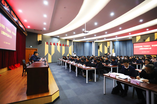周波作了我校“不忘初心、牢记使命”主题教育总结报告。他说,作为第二批开展“不忘初心、牢记使命”主题教育的单位,我校紧紧围绕“守初心、担使命,找差距、抓落实”总要求,坚持把学习教育、调查研究、检视问题、整改落实贯穿全过程,抓思想认识到位,抓检视问题到位,抓整改落实到位,抓组织领导到位,积极推进主题教育成果逐步向工作实践转化,有力推动了学校各项事业发展。为深入推进主题教育“先行一步”,我校多渠道营造学习教育氛围,壮大学习声势,推动“两书一章”的全面学习;不断强化调查研究,感知体悟党史国情和社情民意,倾听党员和师生员工的真言谏语;敢于直面问题,对标检视,梳理整改清单,立行立改,真改实改,用高质量的整改落实成效检验主题教育“成色”。他认为,我校主题教育特色亮点充分体现在四个方面:一是聚焦主题主线,构建“四学”模式,推动学习教育持久保温;二是坚持问题导向,紧盯“三改”任务,推动主题教育动真碰硬;三是融入重点工作,确保“两个促进”,推动主题教育见行见效;四是有效传导压力,开展“一系列督导”,推动主题教育纵深发展。在谈到今后的努力方向与要求时,他要求,一要做到持续深化主题教育,助推学校各项事业发展;二要持续深化理论学习,自觉用党的创新理论武装头脑、指导实践;三要持续在“改”上下功夫,提升学校办学治校能力;四要持续发扬斗争精神,推动中心工作提质增效;五要持续凝练总结经验,形成学校常态长效机制。他强调,学校将继续以抓铁有痕、踏石留印的决心和劲头,深入学习和贯彻习近平总书记在主题教育总结大会中的讲话精神,要以这次主题教育为新的起点,不断深化党的自我革命,持续推动不忘初心、牢记使命。