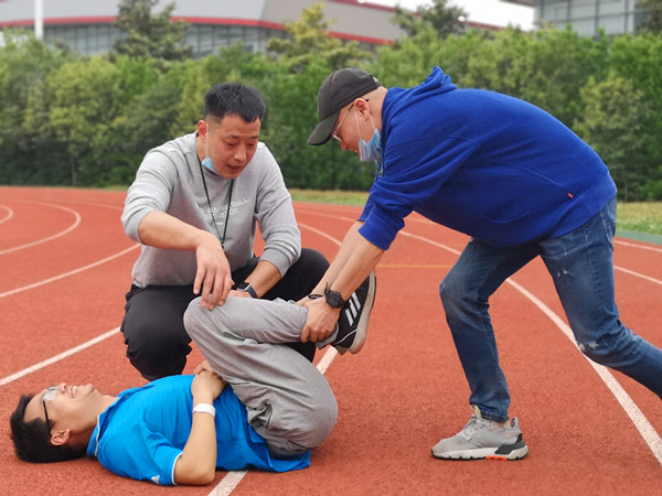 演练活动模拟现实教学场景。授课教师组织“学生”按照1米间隔有序排队,随后进行相关热身活动。为避免出现意外事件,教师在教学设计时删减了激烈对抗性活动,更多地安排了可以调节身心健康的舒缓性运动。同时,教师还在精心设计的教学环节中引入钟南山等抗疫典型人物的健身案例,结合生命教育,引导学生树立科学的体育价值观。课程结束后,学生原地待命,等教师依次刷卡考勤后离开上课场地并及时洗手。活动中还进行了应急突发事件模拟演练。