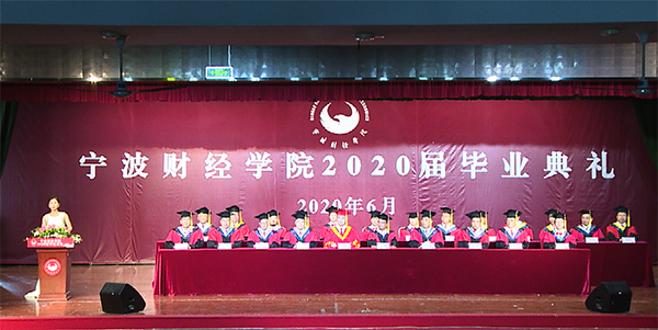 校长王云儿在致辞中代表全校师生对2020届毕业生圆满完成学业表示热烈祝贺,并为全体毕业生送上寄语。他说,因受疫情影响,学校通过这种特别的方式,送别即将踏上人生新征程的2020届宁财学子。在抗击疫情的特殊战斗中,同学们努力克服各种困难,在顺利完成学业的同时,通过各种方式为抗击疫情贡献着自己的智慧和力量,涌现出一大批抗疫典型,充分展现了宁财学子的精神风貌和责任担当。他强调,“鹰的精神”是校园文化的核心力量,激励着一批又一批的莘莘学子走向成功,希望这种精神成为大家走向社会,快步前进的动力。他勉励全体毕业生明确目标,做强自己,牢记校训,做一个自信专注的人,像雄鹰一样,一旦认准的目标,只有翱翔没有放弃!“鹰击长空凌云志,芳华逐梦正当时”,他祝福全体毕业生前程似锦,事业有成,一生幸福!