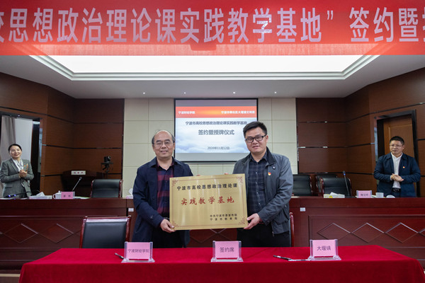 日前,我校与宁波市奉化区大堰镇共建“宁波市高校思想政治理论课实践教学基地”签约暨授牌仪式举行。大堰镇党委书记、文明委主任宋炳林,大堰镇党委委员、文明委常务副主任梅宝明及我校师生代表等参加活动。活动上,我校马克思主义学院及大堰镇有关负责人签署了共建“宁波市高校思想政治理论课实践教学基地”协议,并进行了授牌。随后,马克思主义学院教师王永红结合大堰镇的发展史,围绕“乡村振兴战略”主题为到场人员作了现场教学。据了解,共建思想政治理论课实践教学基地是落实“立德树人”根本任务的重要途径之一,通过将“思政小课堂”“社会大课堂”的有机结合,可以帮助学生更好地了解国情社情民情、理解思政理论知识、培养自身实践能力。