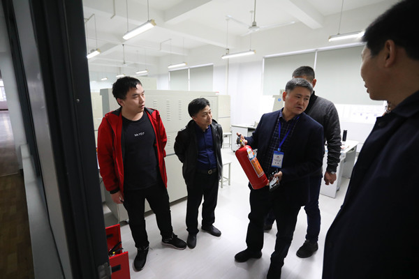 汇报会后,专家组分三组分别进行了台账核查、问卷调查、实地检查等复核工作,重点对工程中心、配电房、学生公寓、实验室、食堂、校内商铺等场地作了检查和指导。