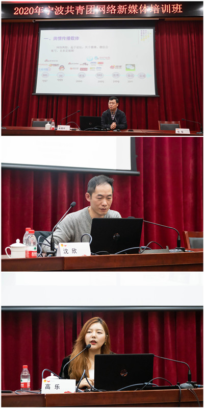 针对新形势、新变化和新特点,本次培训还特别邀请了网络新媒体工作领域专家进行了授课。宁波市委网信办网络传播与社会工作处处长吴兴国、共青团中央宣传部新媒体中心视听部编辑高乐、宁波市公安局公共关系处互联网政务服务科科长沈欣,分别以“新媒体时代的舆论生态和引导”、“新时代共青团宣传思想文化工作的探索与思考”、“新媒体艺术创作”为题进行了授课。向全体学员介绍了新时代网络新媒体工作者应具备的素质、工作形式、新媒体工作特征等内容,现场学员学习氛围浓郁,并表示将进一步发挥团属新媒体“青年之声”的特性和作用,为宁波当好浙江建设“重要窗口”模范生贡献青春力量。