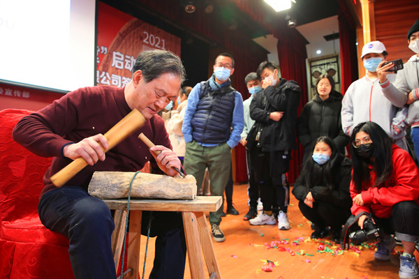 之后,高公博大师走上讲台,现场展示木雕技艺,在大开大阖、精雕细刻中,一件极富创意的精美木雕作品呈现在嘉宾、师生面前。大师精湛的技艺、忘我的精神,赢得满堂喝彩。同时,他还为现场师生讲述了自己的艺术创作经历与感悟,声情并茂、言之拳拳,为大家带来精神上的洗礼与审美上的升华。