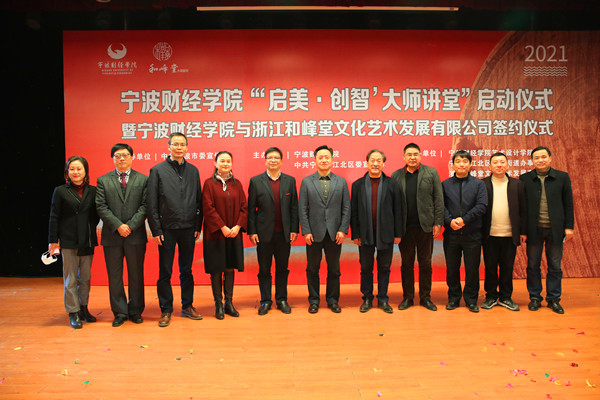 宁波市江北区有关单位负责人,浙江和峰堂文化艺术发展有限公司董事长、浙江工艺美术大师王家锋,宁波市工艺美术大师周力等应邀出席仪式,浙江和峰堂文化艺术发展有限公司、宁波沐青轩文化发展有限公司、学校有关部门负责人以及艺术设计学院部分师生代表等参加了当天的活动。