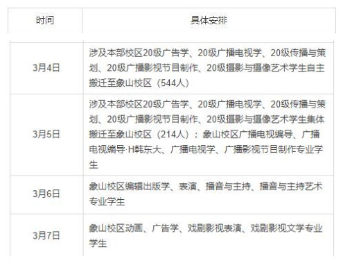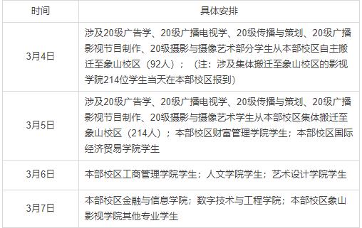 本部校区:象山影视学院搬迁学生,由东一门进校报到,东二门搬迁出校;其他学生:由东一门进校报到。