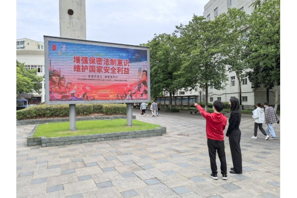 学校相关部门通过校园内电子屏播放保密公益宣传片,在各处宣传栏张贴了宣传海报,在行政大楼玻璃走廊等地设置活动展板进行了保密知识宣传。