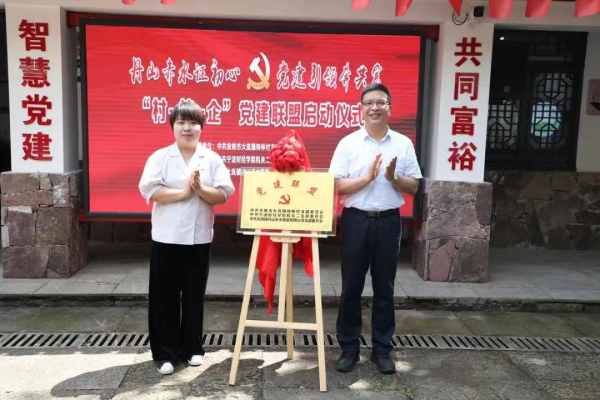 6月17日,学校机关党委第二党支部与余姚市大岚镇柿林村党支部、大岚镇丹山赤水旅游有限公司党支部“丹山赤水同心圆”党建联盟共建仪式活动在余姚市大岚镇柿林村举行。我校党委书记周波与余姚市大岚镇党委书记胡建共同为“党建联盟”揭牌。参加此次活动的还有校纪委书记林长兴、校工会主席高振强、校党委委员、组织部(统战部)部长叶晓莉,以及三家联盟单位党支部负责人、党员干部代表、我校驻村干部等。