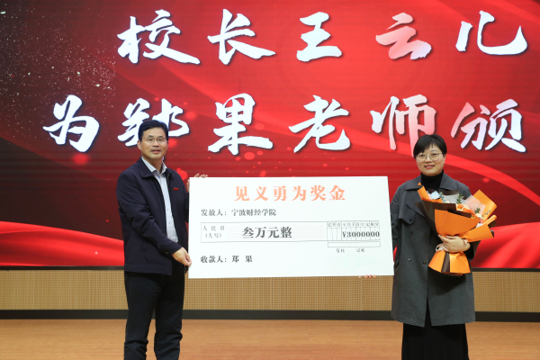 11月22日时浙江省第7个“见义勇为宣传日”,当天下午,郑果老师见义勇为表彰仪式暨事迹宣讲会在本部校区信息楼报告厅举行。校长王云儿、校党委书记周波出席,学校各学院师生代表参加活动。在甬新闻媒体记者到校进行集体采访。省思政名师工作室负责人姜帆主持活动。