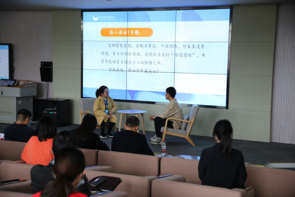 本次大赛包含基础知识测试、案例研讨、谈心谈话三个项目,其中案例研讨和谈心谈话两个环节采用现场比赛方式进行。案例研讨环节为“我提问、你回答”形式,选手们两两组队,共同研究分析学生工作案例;谈心谈话环节,参赛选手和助演学生以情景再现的方式呈现日常工作,辅导员现场“把脉问诊”,切实解决学生需求。比赛过程中,选手们紧扣新形势,立足新变化,全面展现了自身的理论功底、工作技巧、综合素质。