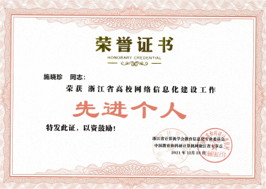 日前,由浙江省计算机学会教育信息化专业委员会、中国教育和科研计算机网浙江省主节点组织开展的2021年浙江省高校网络信息化建设工作先进单位评选结果揭晓,我校获得“网络安全方向”“智慧校园建设方向”先进单位称号,施晓珍老师获“高校网络信息化建设先进个人”荣誉称号。
