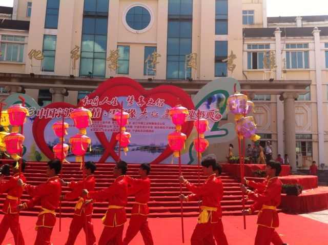 我校50名学生作为青年志愿者为此次集体婚礼提供了全方位的志愿服务,他们在此次活动中担任了庞大的迎亲队伍,参与了喜牌队、西湖折伞队、旗袍队、彩礼队等的表演。在活动中,他们充分地发挥了不怕苦,不怕累,把欢乐和美好留给他人的精神。同时也向宁波人民展现了我校志愿者的精神。虽然天气炎热,但没有削减志愿者们的热情。