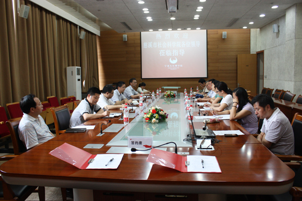 6月17日上午,经管学院与慈溪市社科院合作成立“慈溪市情研究中心”签约仪式在信息楼105室举行。慈溪市社科院副院长黄高峰、张冰,我校地方服务与合作处、科研处、经管学院相关负责人等出席签约仪式。