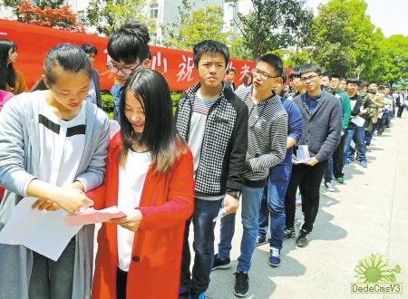 昨天下午,参加宁波大红鹰学院2015年“三位一体”招生的考生正排队进入考场。当天,7所在甬高校“三位一体”招生工作进入面试阶段,计划招生总数845人。“三位一体”综合评价招生是我省从2011年开始试行的一种特殊招生类型,是指以考生学业水平考试成绩、高考成绩和学校综合测试成绩按一定比例形成综合成绩后,择优录取考生的录取形式。(严龙 陈敏 张凉 摄)